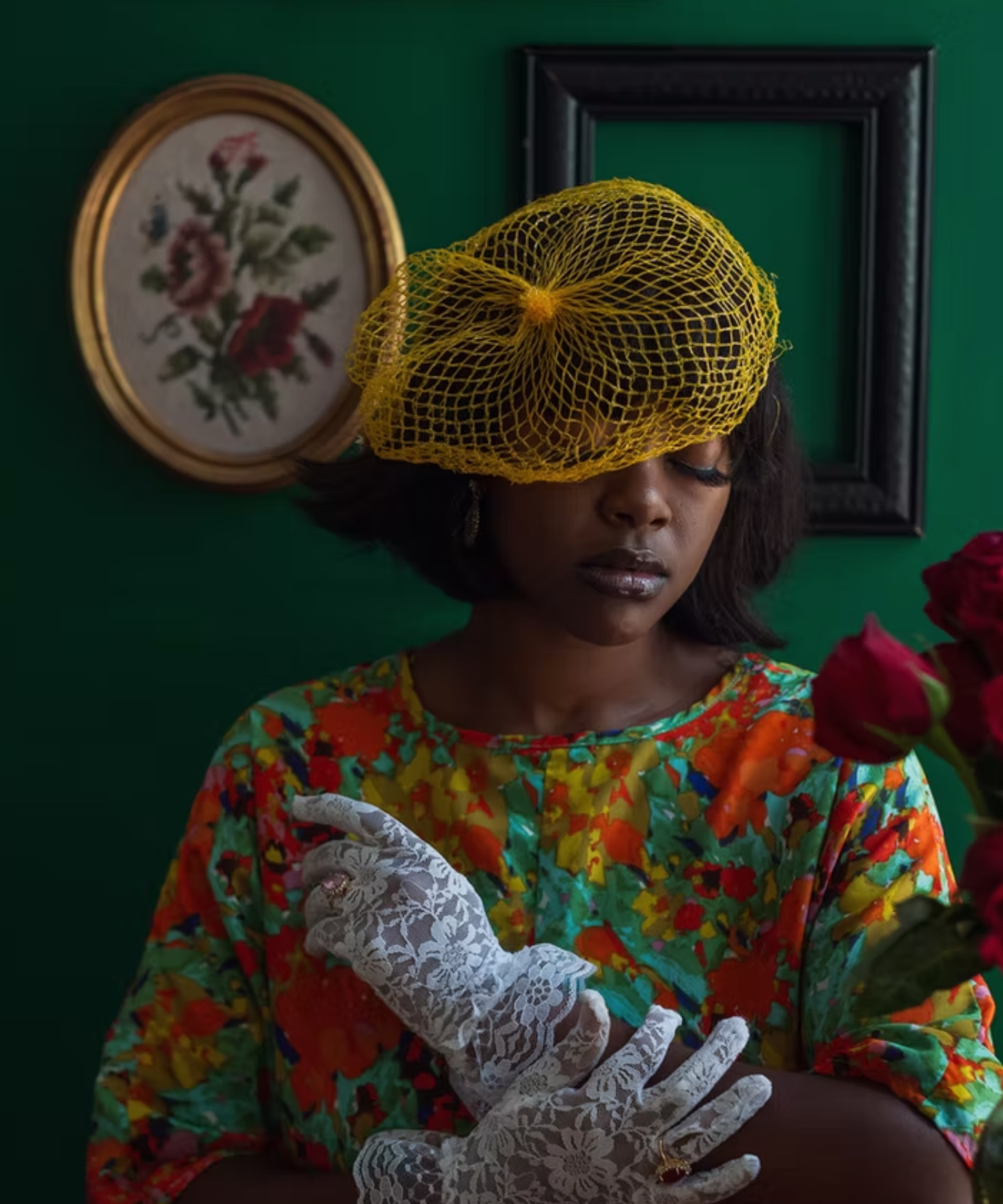 Dionna uses photography as a means of self-exploration, navigating the layered realms of memory, vulnerability, authenticity, and resilience. Through self-portraiture, she reclaims personal history and reshapes the narrative of self, incorporating symbolic materials such as fabric, relics, knickknacks, wood, and vivid colors as tools of transformation. Whether created in the studio, at home, or within nature, her self-portraits become meditative acts, revealing the complexity of human experience and the tensions between light and darkness, strength and fragility, past and present.