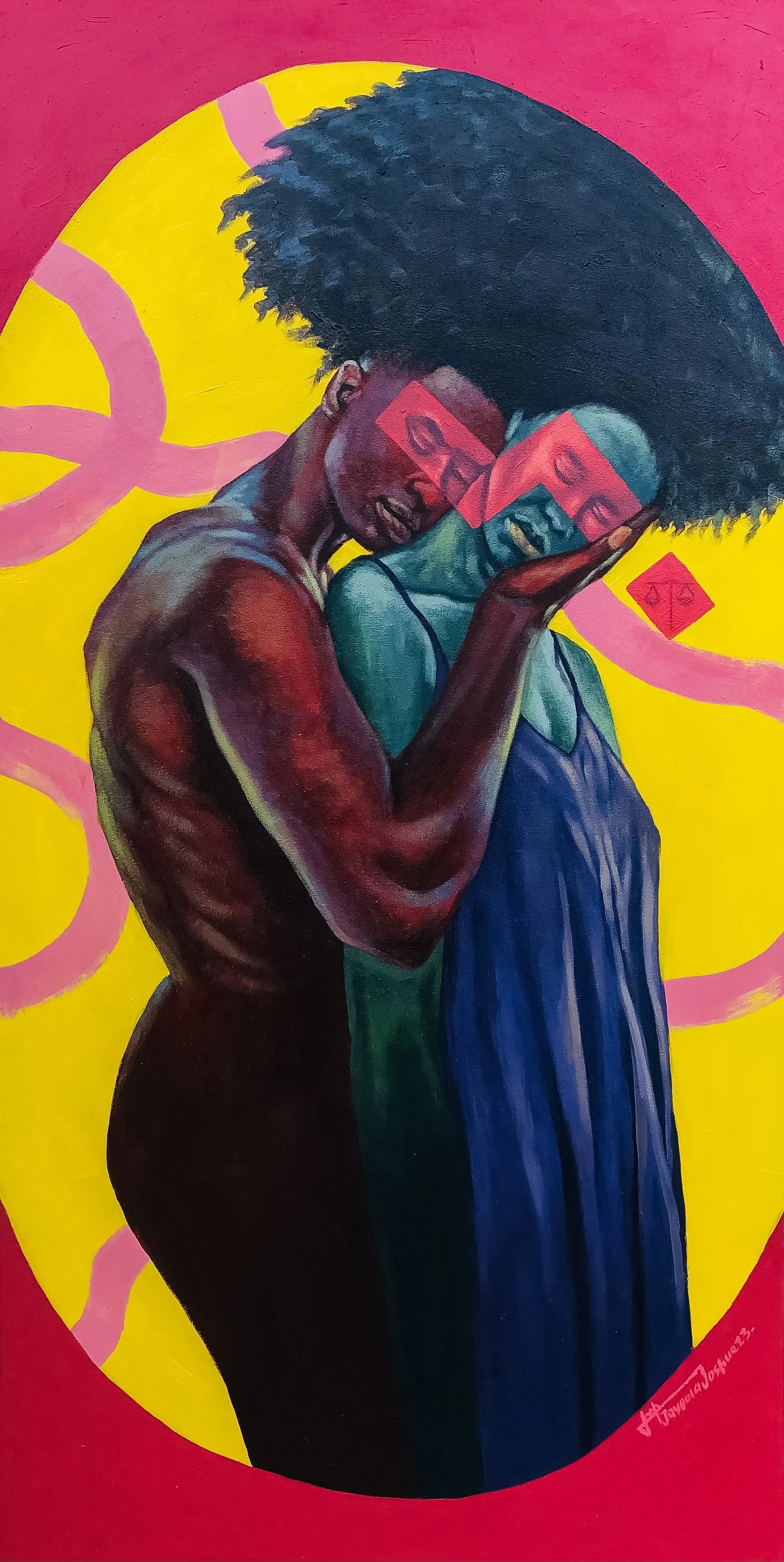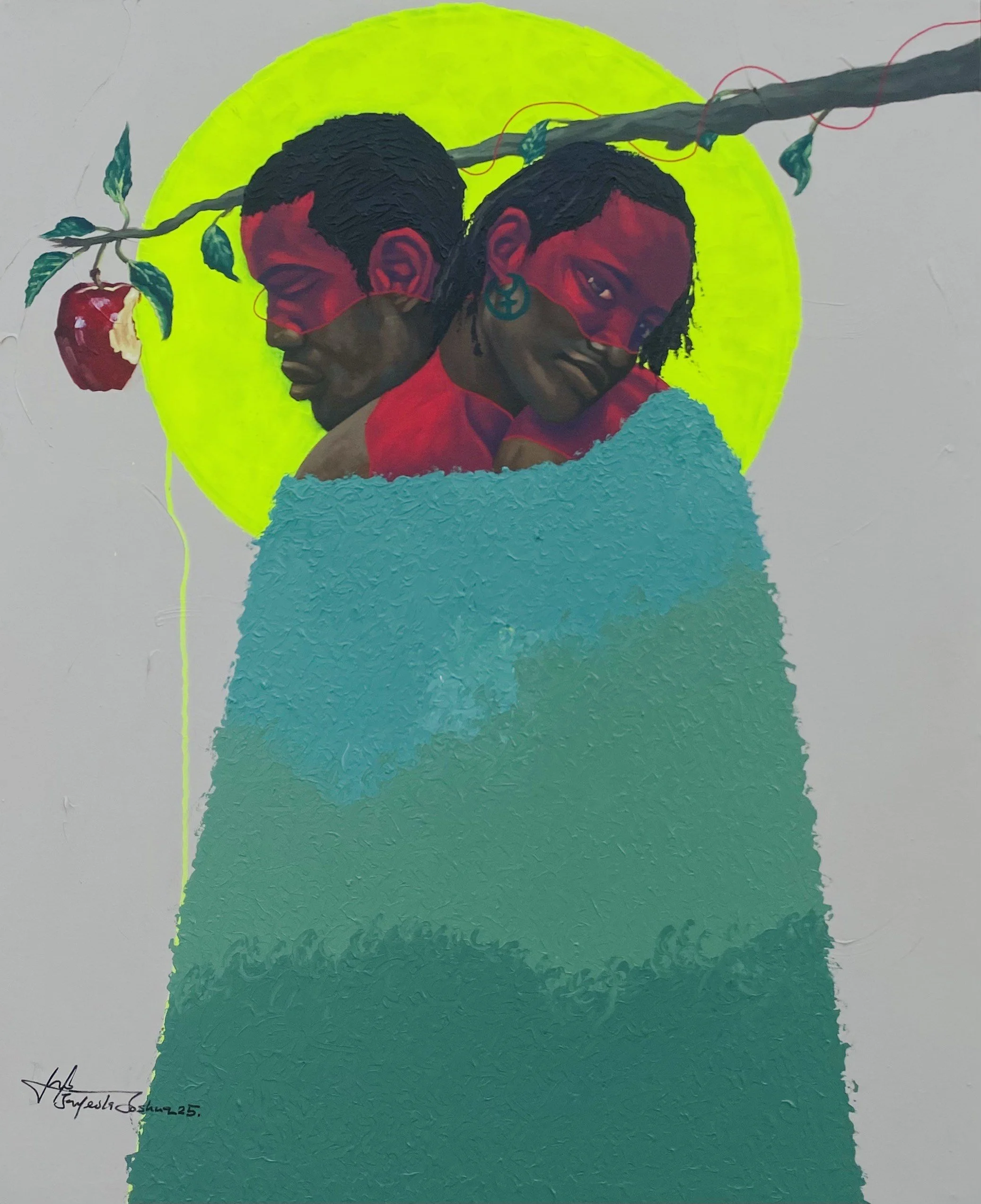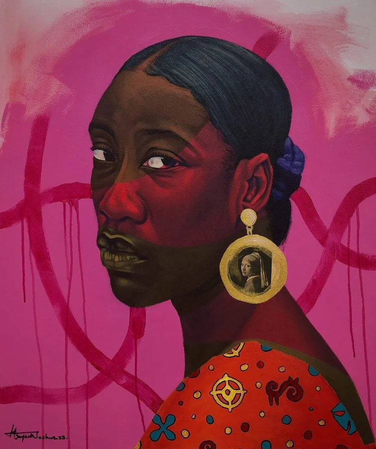 Jayeola Joshua is a talented visual artist born and based in Lagos, Nigeria, with his roots from Osun state (Southwest Nigeria). Having obtained his national diploma (ND) from the Polytechnic Ibadan, Joshua furthered his education at Yaba College of Technology, specializing in painting and earning a Higher National Diploma (HND). He had his training at the Universal Studio of Art in Nigeria and was mentored by fellow Nigerian Artist, Mr. Abdulsalam Abdulkareem.